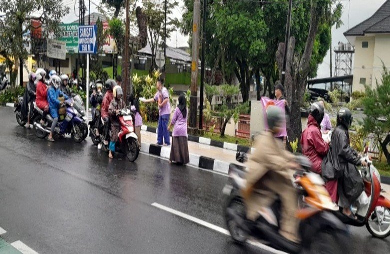 Kegiatan membagikan takjil gratis kepada orang yang membutuhkan di depan kantor bupati pada pukul 4 sore. Dalam waktu singkat, takjil terbagi habis, hanya dalam   durasi kurang lebih 5 menit untuk 50 box. Setelah itu, kami berfoto bersama sama.