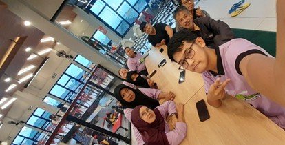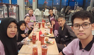 Kemudian kegiatan dilanjutkan dengan bukber di Hot Way. Kita ngobrol seru sambil menunggu waktu berbuka puasa. Tetapi Andrew pulang duluan. Sebelum waktu buka puasa, kita berselfie foto.