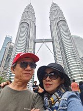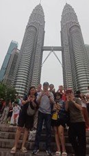 Ada sebuah kejadian lucu, ceritanya begini, kami bertanya kepada petugas airport, “Dimana terminal bis?” “Terminal bis?” sahutnya canggung. Tentu saja dia ramah meladeni kami namun mungkin ia agak tergesa-gesa menjawab kami dengan Bahasa Melayu, “Terminal Bas” sambil menunjuk arah rambu-rambu yang ada tulisan “Terminal Bas.” Awalnya mata kami tertuju pada gerak mulutnya yang membingungkan dengan Bahasa Melayu, “Bas..? Bas..?” Kami para tuliwan pun segera berekspresi dengan isyarat tangan, “Bis… Bas… Bis..” kepada petugas. Ia pun spontan mengangguk mengulangi pelafalannya sembari menunjuk ke rambu tadi, “Ikuti saja arah jalan lurus turun eskalator ke bawah belok kanan.” Akhirnya, kami pun tersenyum berjalan sampai ketemu Terminal Bis untuk beli tiket seharga RM.15 (sekitar Rp. 60.000,-) untuk 7 orang, jadi totalnya RM105, dengan tujuan ke Terminal Bis Kuala Lumpur Sentral. Harganya pun lebih murah dibandingkan dengan tiket KLIA Ekspres atau KLIA Transit. Setiba kami di Terminal Bis KL Sentral, kami pun turun bergegas berjalan membawa koper-koper kami, sembari menahan rasa lapar menuju restoran untuk makan siang. Setelah kenyang makan siang, kami pun masih berjalan kaki lagi untuk mencari loket tiket MRT, lalu kami naik MRT menuju Stasiun Mal TRX (Tun Razak Exchange), kemudian kami turun dari kereta dan terus berjalan keluar dari Mal itu lalu berjalan menuju ke tempat penginapan kami di The Forum Condominium, Lantai 5, yang jarak lokasinya dekat dari The Exchange TRX mal, Kuala Lumpur. Setelah beristirahat sore, kami pun berjalan kaki menuju ke Menara Kembar Petronas (Petronas Twin Tower) yang menawan hati untuk berfoto dengan latar belakangnya dan bersantai di Taman KLCC (Kuala Lumpur City Center).