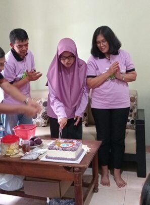 Senyum bahagia penerima hadiah dalam suasana penuh kebersamaan keluarga besar Adeco Kedu.