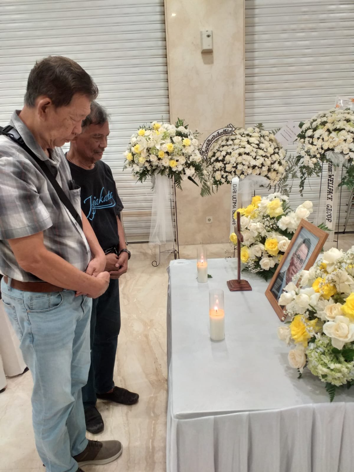 Saya menggelengkan kepala…..baru pertama kali ini kami alami suasana pelayatan seperti itu ….. luar biasa penuh para pelayat yang datang memberi penghormatan terakhir kepada Toto Wijaya (RIP) yang dikenal sebagai orang yang ramah, sabar, murah senyum, baik hati, tidak suka marah, dan suka berteman. Di depan jenazahnya, kami berdoa sejenak. Selamat jalan, sobat kami Toto Wijaya.