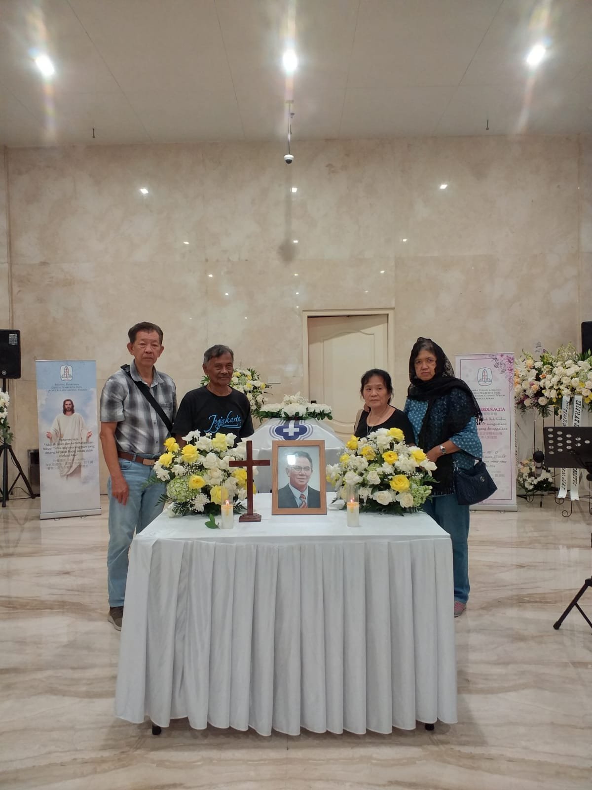 Acara ibadat Kembangan selesai, kami masih mengobrol dan sempat mendengarkan cerita dari isteri Toto Wijaya ( RIP ) – bu Meilia tentang proses pemeriksaan dari para dokter sampai saat menghembuskan napas terakhir.