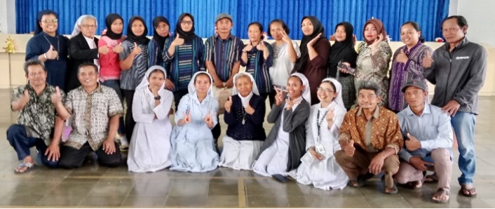 Wouw ……… teriak anak-anak SLB B Dena Upakara dengan heboh saat melihat para guru dan ibu asrama menampilkan tarian mereka. Mereka menari dengan bagus sekali …. sangat menarik …. hebat ! Kami tertarik melihatnya. Hari ini tepatnya pada hari Selasa, 21 Januari 2025 Keluarga Besar Dena-Upakara Wonosobo merayakan Natal 2024 dan Tahun Baru 2025. Kecuali itu Dena-Upakara juga sekaligus merayakan Pesta Perak Pak Suparman yang telah bekerja di susteran PMY selama 25 tahun. Lama sekali ya …. !!! Oleh karena itu segenap karyawan Dena-Upakara semuanya diundang ke pesta : para suster, para guru, ibu asrama, ibu-ibu cuci, ibu-ibu dapur, bapak-bapak cleaning service, pak kebun, semuanya diundang ke pesta. Waaah …. ramai sekali.