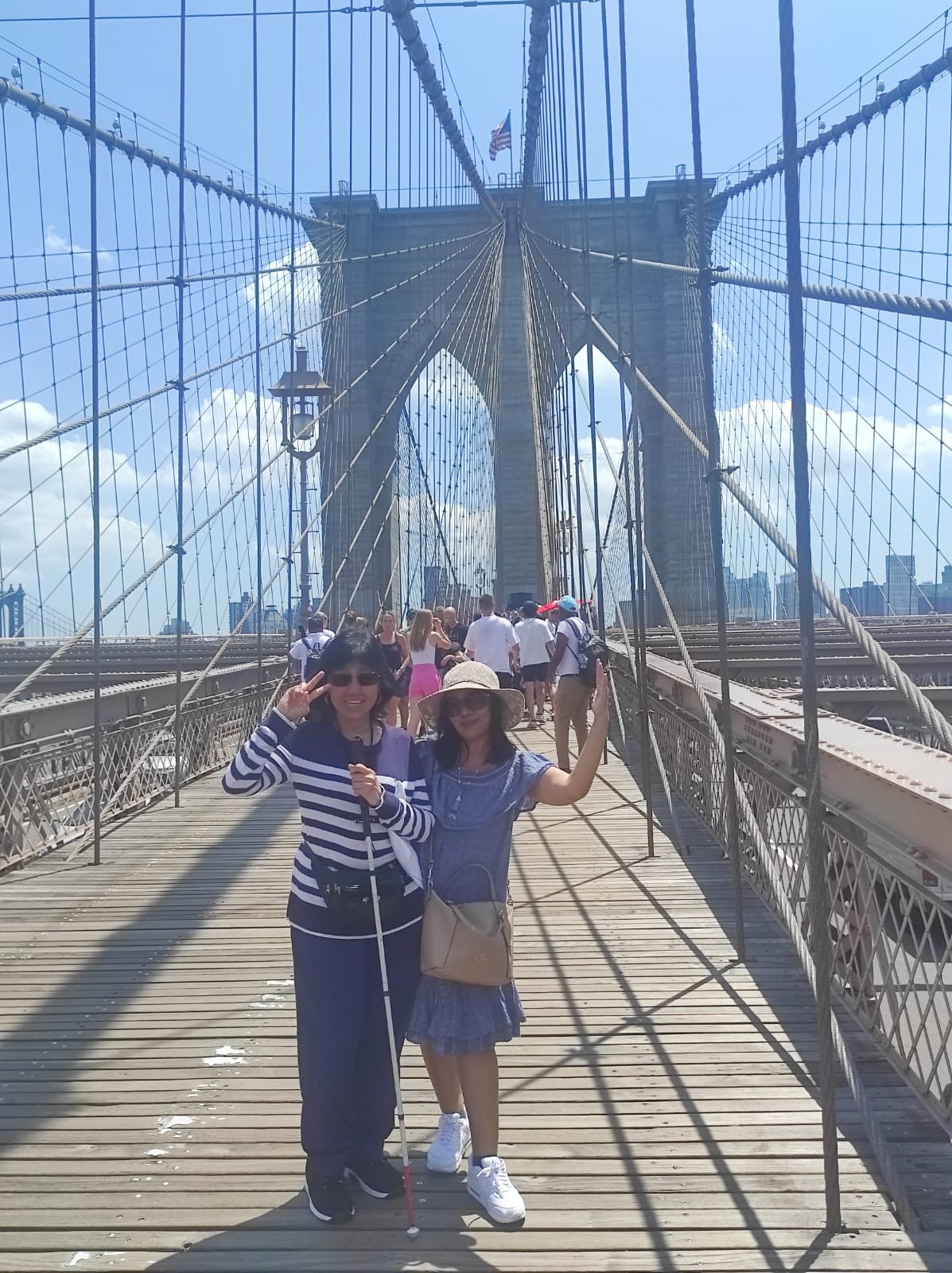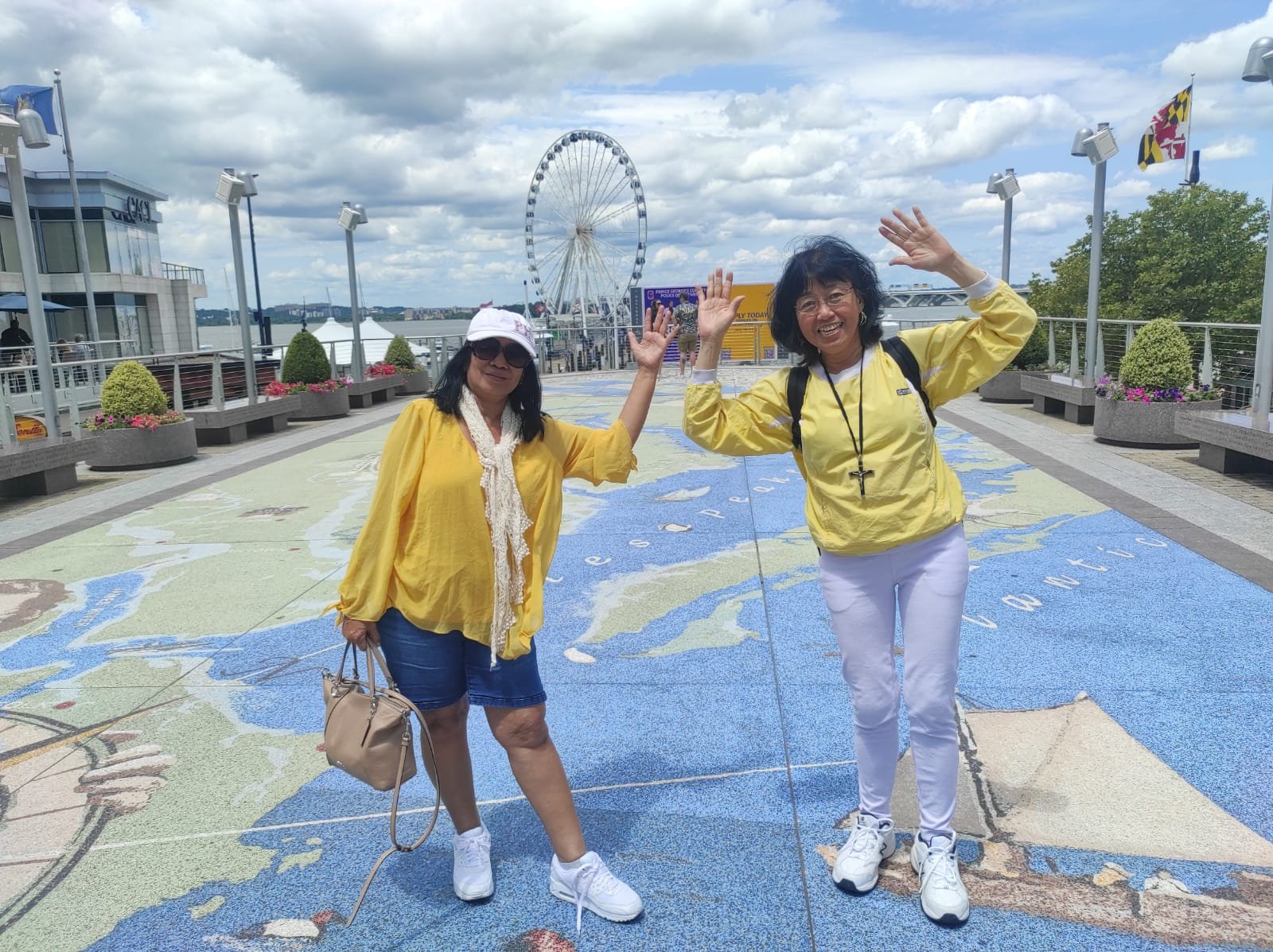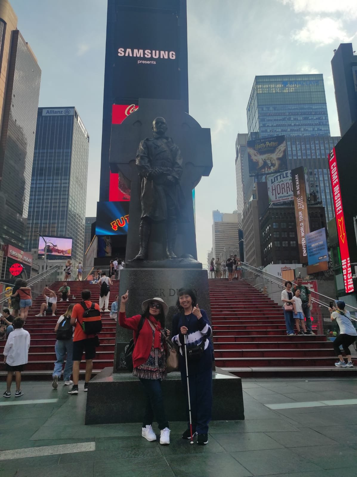 Demi memanfatkan kesempatan sebaik mungkin dalam waktu yang singkat, saya dibelikan tiket terbang dari Orlando menuju Virginia pada tanggal 18 Juli 2023, sampai mendarat di bandara Washington Dulles Internasional, disambut saling melepas kangen penuh haru dan hangat hati Kak Sioe Lang, teman terbaik dalam hidup saya. Selama 2 minggu saya menginap di rumah Kak Sioe Lang. Kami saling berbagi banyak sekali cerita nostalgia kenangan di sekolah, teman-teman para alumni Wonosobo, sungguh seru !!!. Saya senang bisa memasak menu khas Indonesia buat pengobat rindu. Kak Sioe Lang makan enak sekali dengan hati gembira. Hari berikutnya Kak Sioe Lang sudah mempersiapkan itinerary bersama saya supaya bisa berkeliling di beberapa obyek wisata yang indah dan amazing. Destinasi wisata yang pernah kami kunjungi adalah Gallaudet University ( kampus mahasiswa khusus tuli ), Gereja Katolik Universitas Amerika, Museum-museum bersejarah Amerika, Abraham Lincoln Memorial dan sekitarnya kota Washington DC. Kak Sioe Lang juga mengajak saya bepergian ke negara bagian New York untuk menikmati keindahan Brooklyn Bridge terkenal di jantung kota New York, Times Square, Patung Liberty juga melihat monumen Ground Zero terkenal reruntuhan Menara kembar World Trade Centre. Fantastis !!